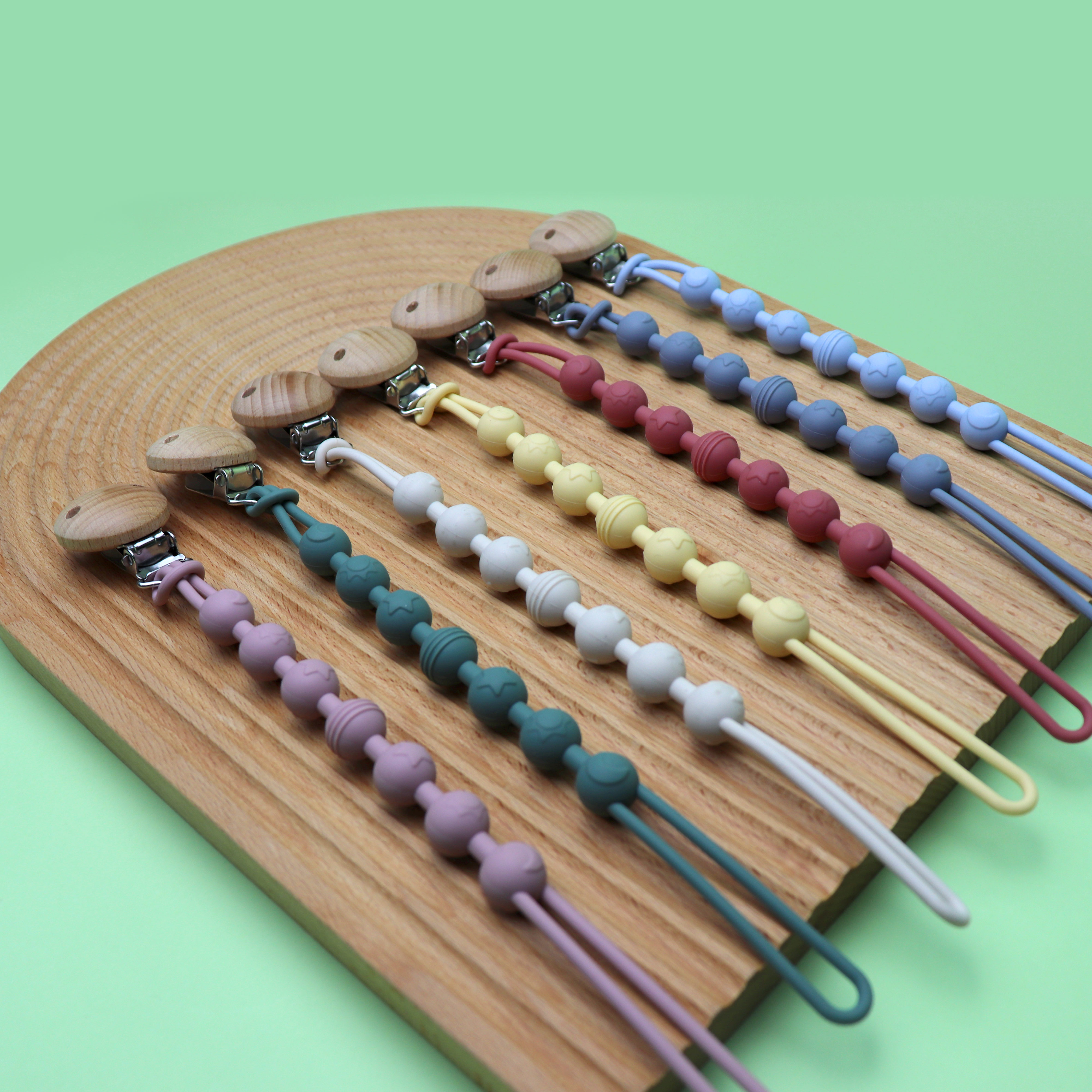 材質(zhì):硅膠奶嘴鏈+櫸木夾子