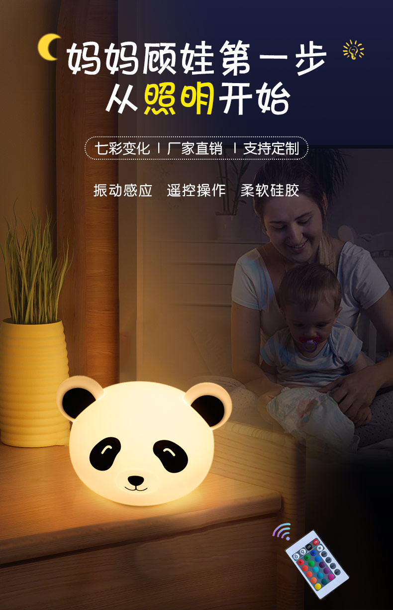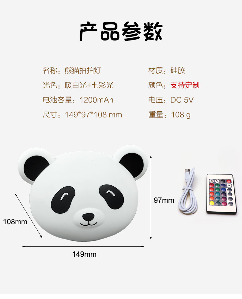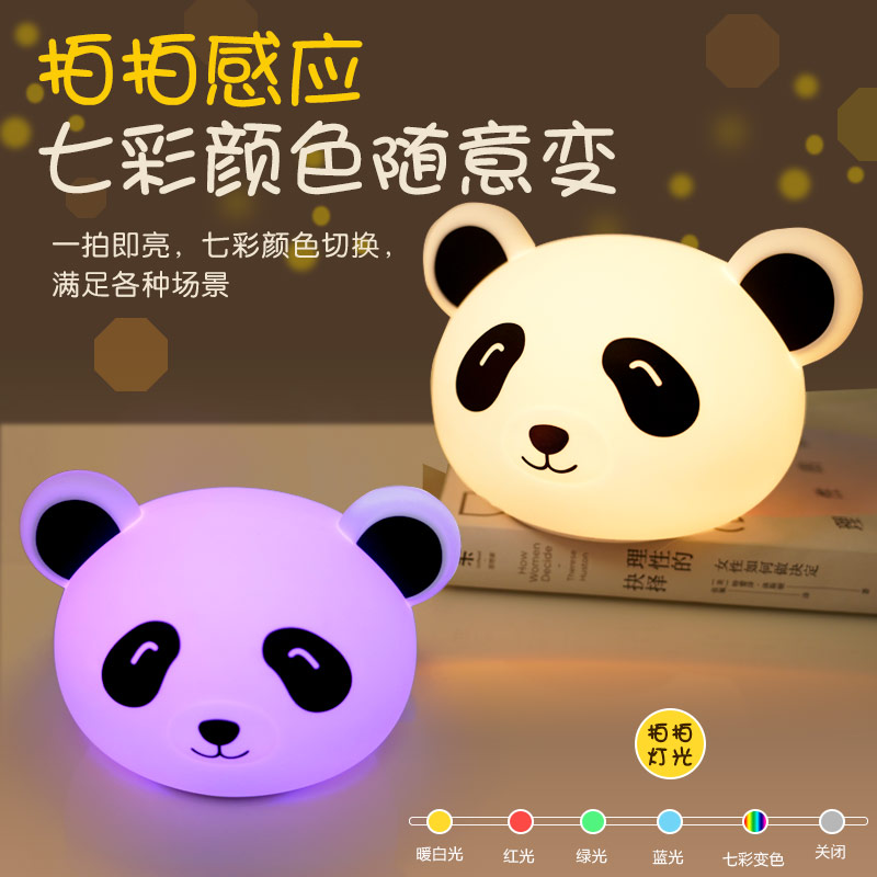 熊貓拍拍燈 創(chuàng)意夜燈硅膠卡通發(fā)光玩具充電拍拍燈 可加印LOGO批發(fā)