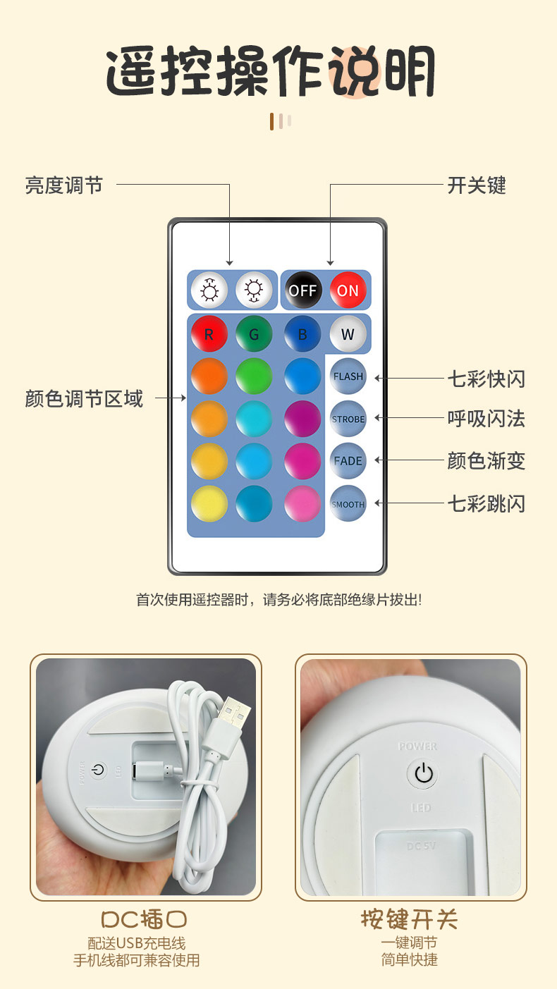 光色:暖白光+七彩光