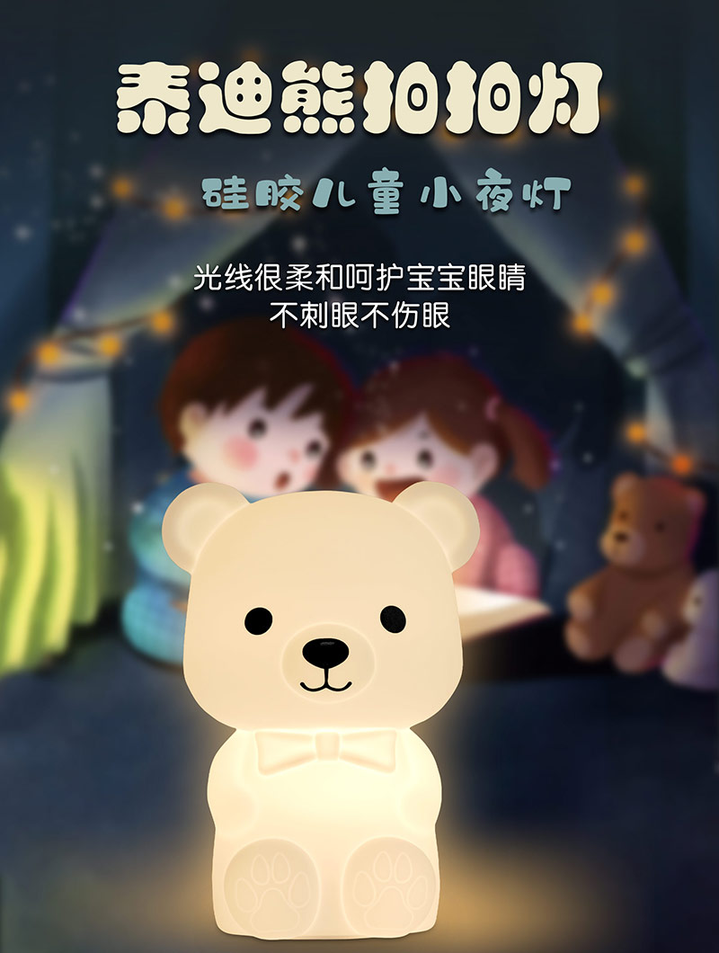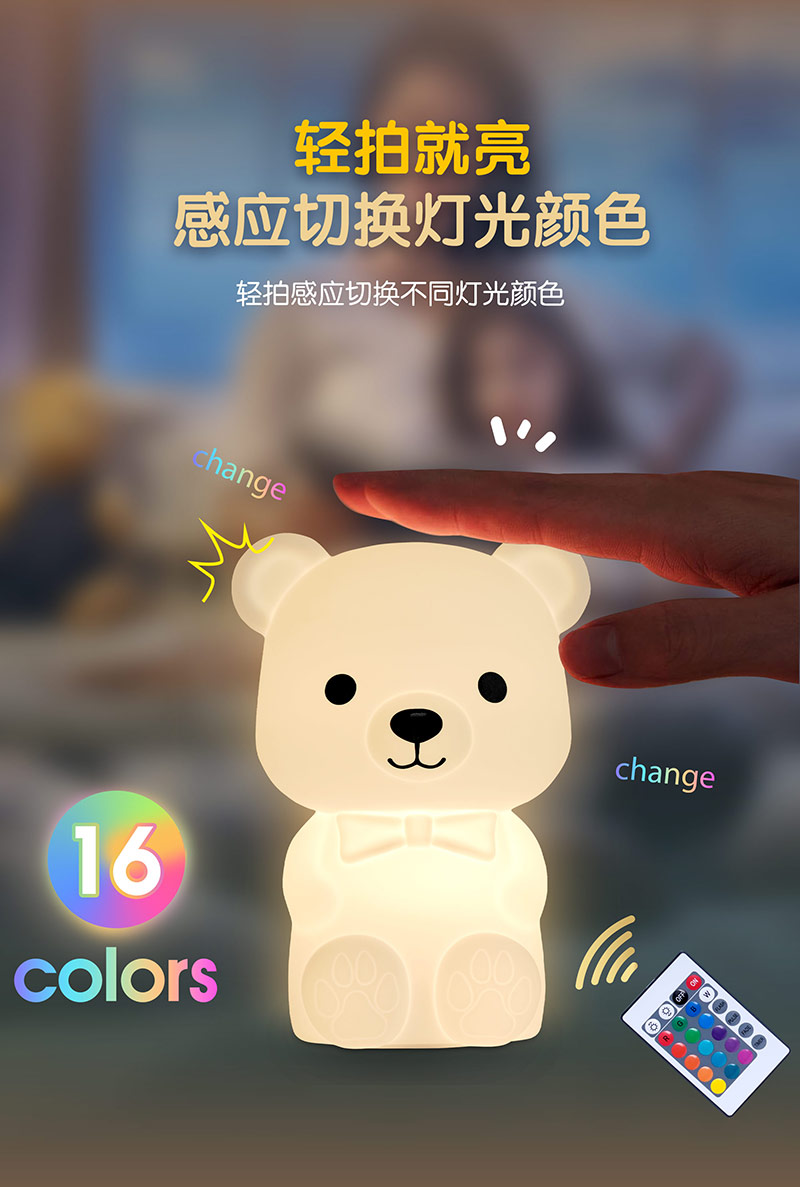 您的位置:首頁(yè) > 產(chǎn)品中心 > 硅膠家居用品 > 拍拍燈 > 泰迪熊硅膠臥室氛圍床頭伴睡小夜燈拍拍燈廠家跨境批發(fā)