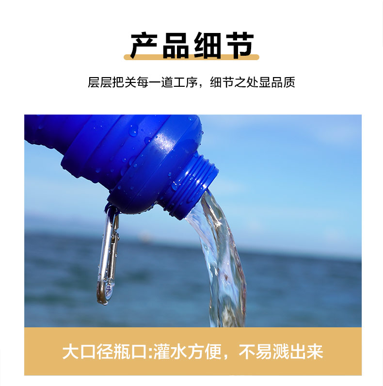 用途:食品級材質(zhì),不含BPA,可伸縮折疊,不占空間,抗摔耐壓,耐熱抗冷,多色可選,時(shí)尚健康