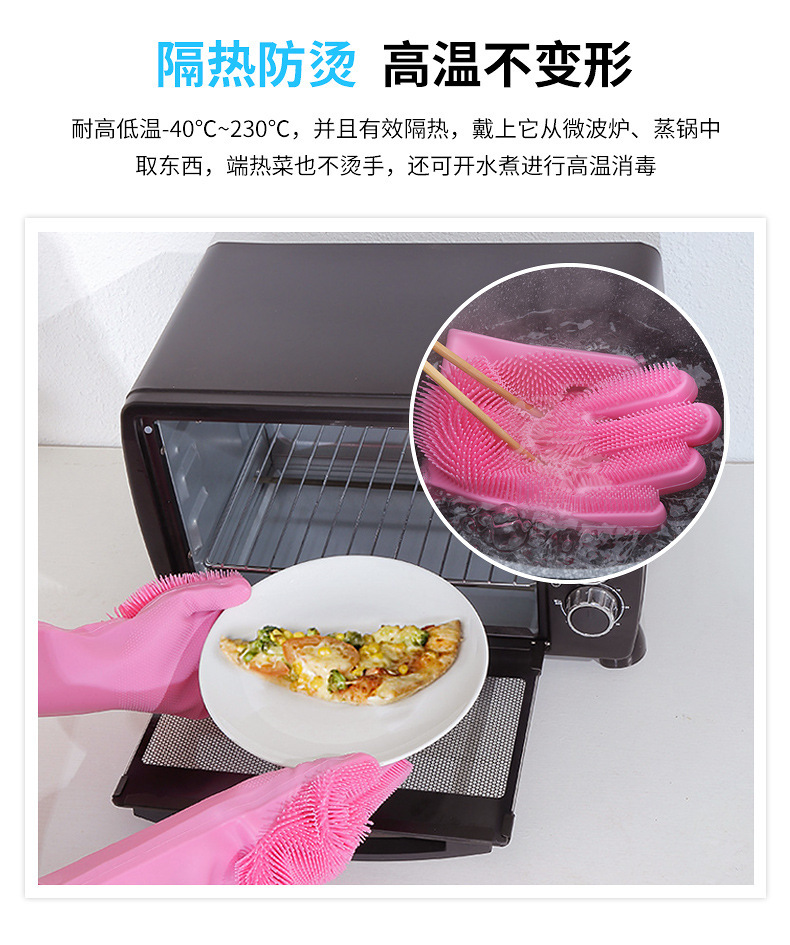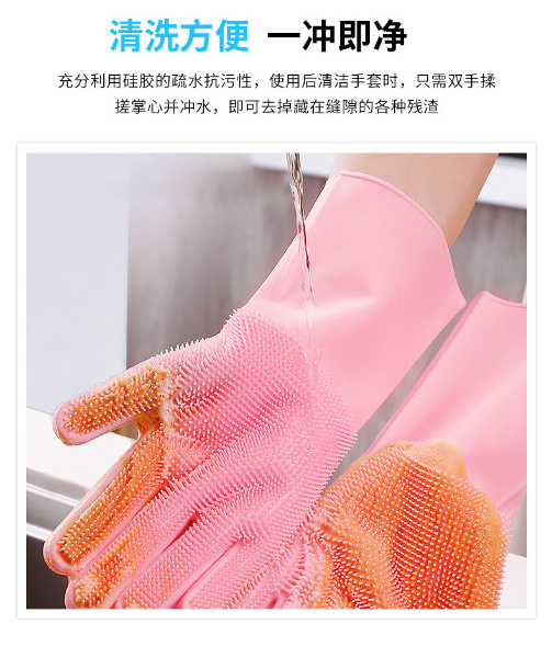 3.手套易清洗徹底不滋生細菌,這一點是很多清潔用品都做不到的,油脂、醬油、醋、污垢等等都無法有力附著在硅膠表面,而其他比如鋼絲球、海綿塊、洗碗布等等材質,都做不到,使用硅膠洗碗手套實在是讓人放心。