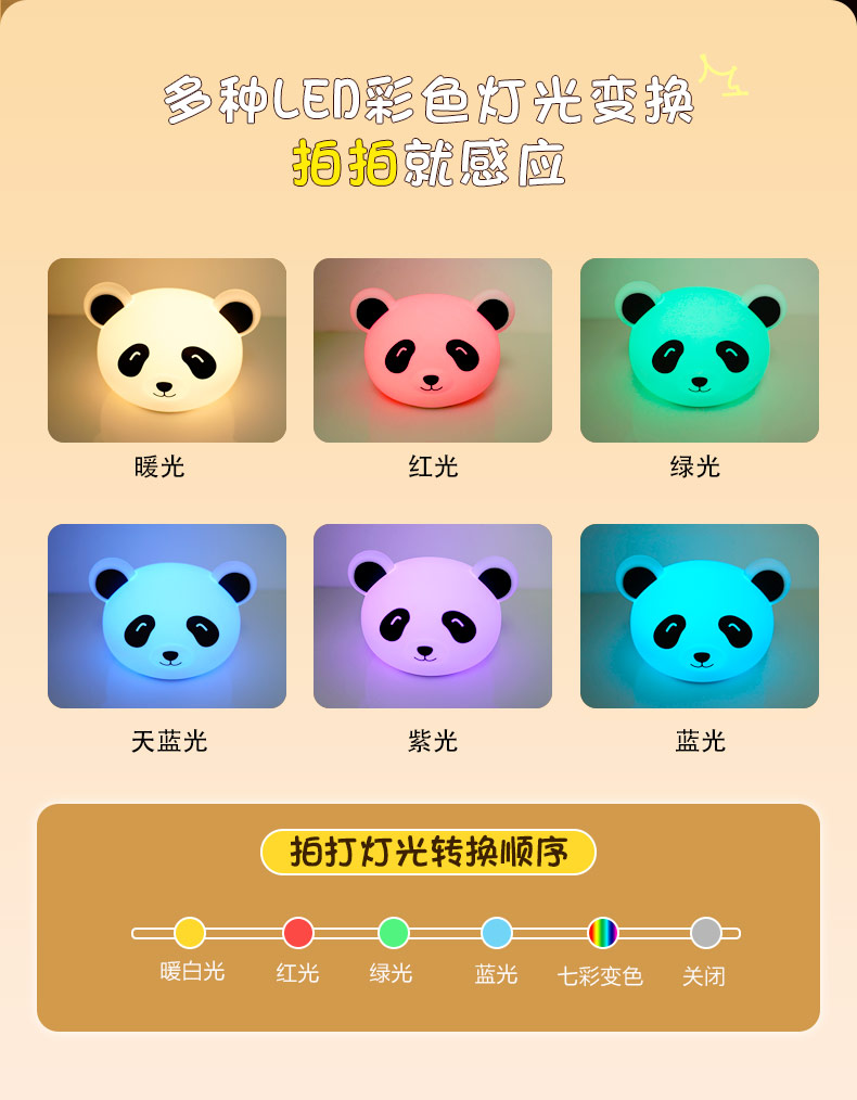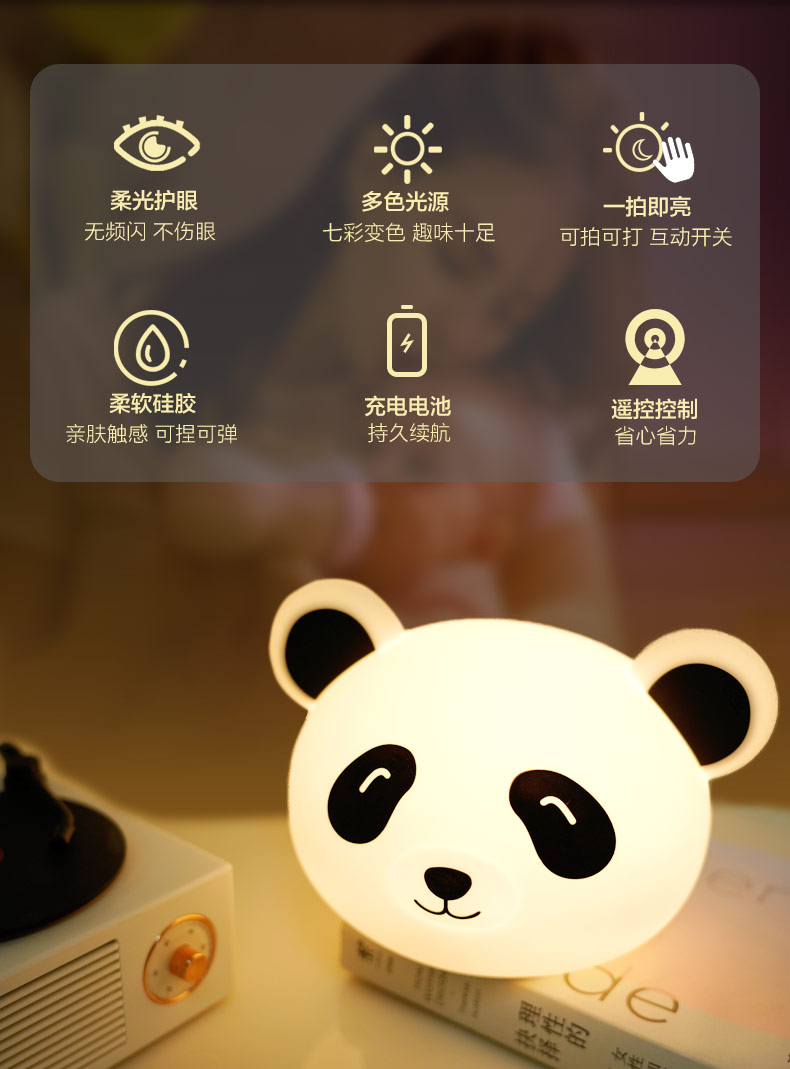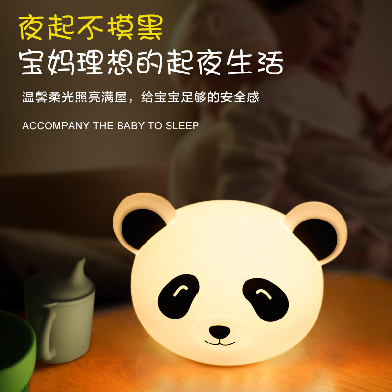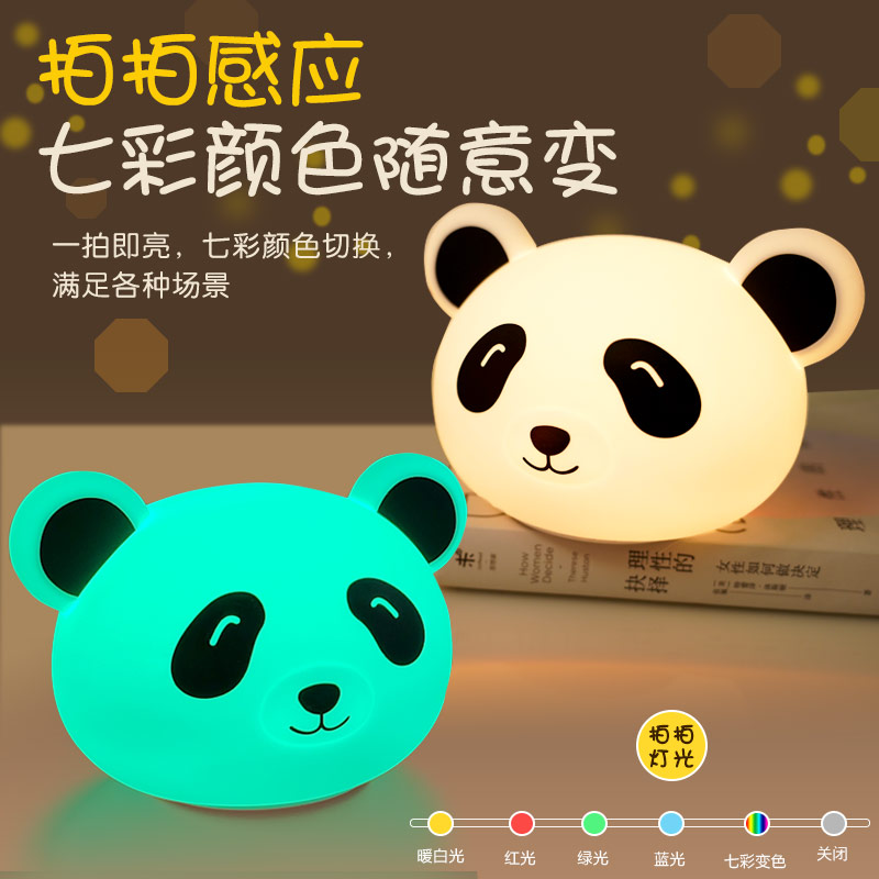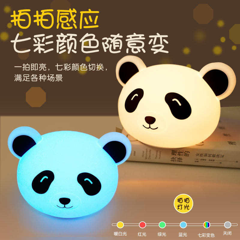 熊貓拍拍燈 創(chuàng)意夜燈硅膠卡通發(fā)光玩具充電拍拍燈 可加印LOGO批發(fā)