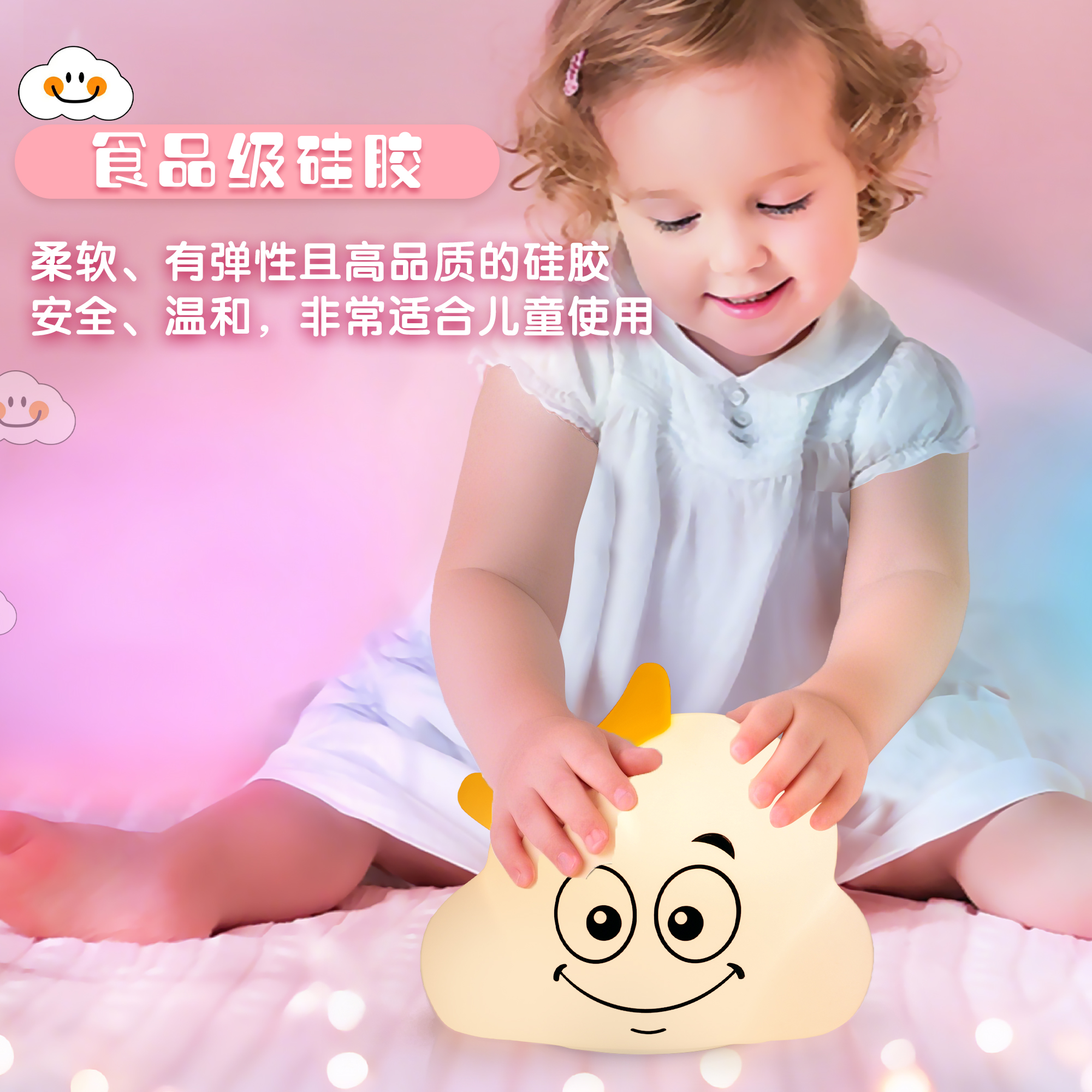卡通造型柔光燈硅膠拍拍拍拍燈兒童護(hù)眼小夜燈