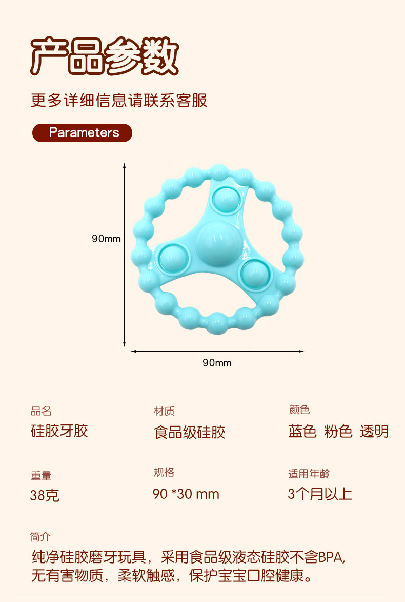 簡介:純凈硅膠磨牙玩具,采用食品級(jí)液態(tài)硅膠不含BPA,